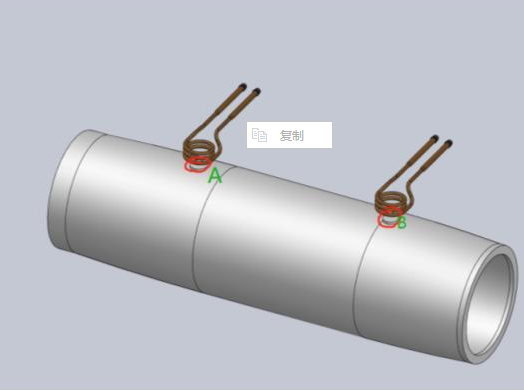 【操作過程】:感應器同時對A/B兩點加熱,紅外對A點測溫,A點到300℃后,感應器移開。對該點進行焊接,焊接結束后,感應器移回,繼續對兩點進行加熱,此時紅外監控B點溫度,到300℃后,感應器移開,對B點進行焊接。此過程A點溫度無須監控。供方先提供一支紅外,對A點進行測溫,暫時無需對B點進行測溫。